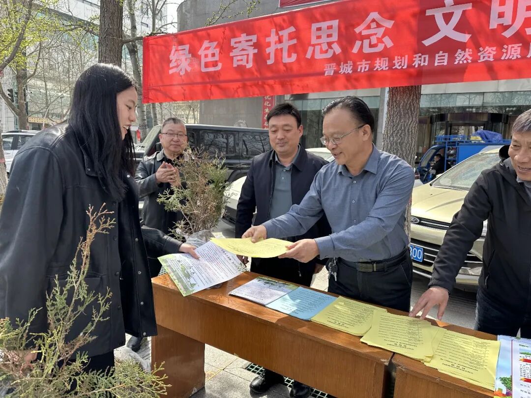 清明将至,追思悠悠。为倡导绿色、文明、安全的祭扫方式,4月2日,晋城市规划和自然资源局开展“文明祭扫 平安清明”主题活动。活动现场向市民免费发放柏树苗10000余株,同步发放《森林草原防灭火条例》《森林防火倡议书》等宣传资料与宣传物品5000余份,引导群众自觉践行安全文明祭扫。通过以植树寄哀思、植绿慰先人的方式,推动移风易俗,树立文明祭扫新风尚,也为全市森林防火宣传月系列活动再添实效。