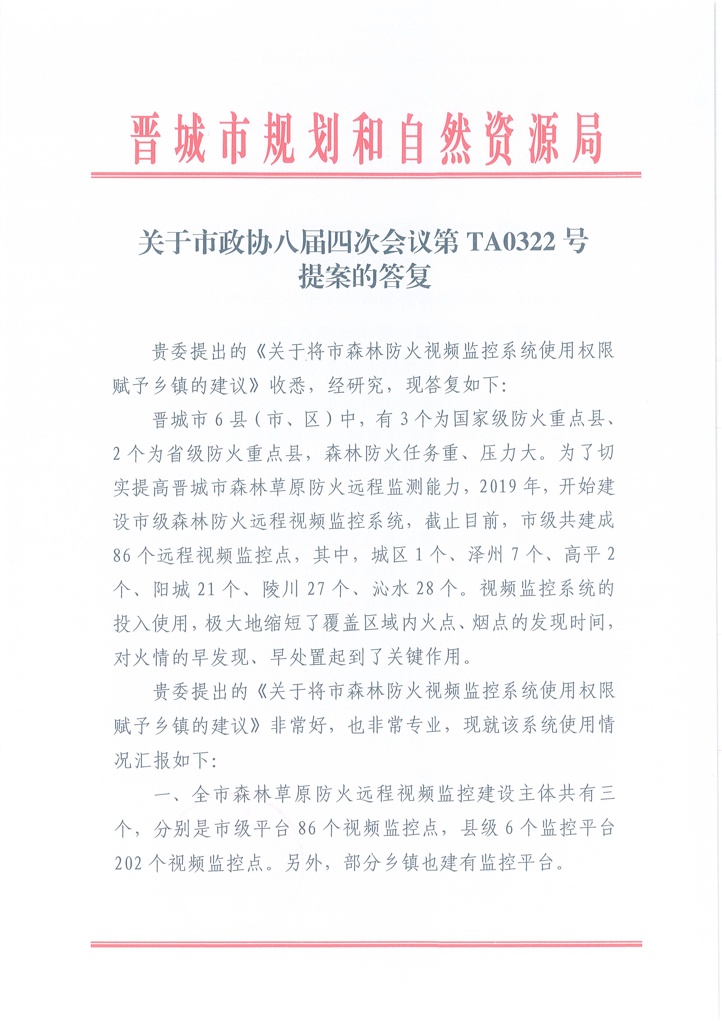 关于市政协八届四次会议第TA322号提案的答复