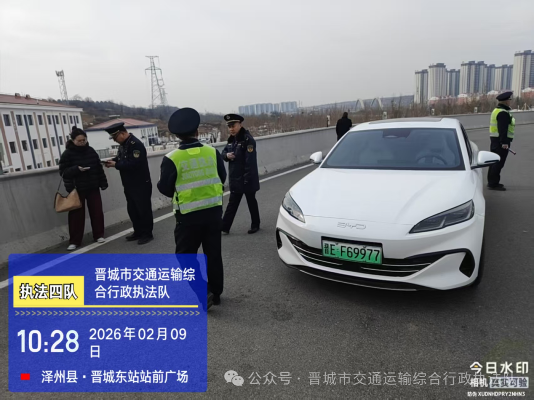 春运返程高峰即将来临,为切实保证春运安全保障工作各项措施精准落地,2月9日,晋城市交通运输综合行政执法队结合此前晋城市建立的网约车保险协同监管机制以及2026年春运安全生产和服务保障工作方案的要求,聚焦群众反映强烈的非法营运、违规要价等乱象,联合泽州交警、泽州县交通运输综合行政执法队在高铁站开展联合执法专项整治,切实守护群众春节出行“平安线”。
