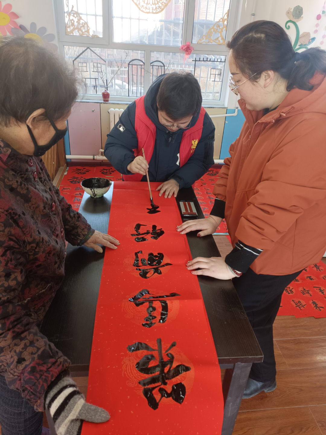 活动现场,书法志愿者挥毫泼墨、妙笔生花,一副副饱含新春美好寓意的春联跃然纸上,浓浓的年味萦绕乡间。此次写春联送祝福活动,既弘扬了中华优秀传统文化,丰富了村民的精神文化生活,更拉近了教育系统干部职工与帮扶群众的距离。红彤彤的春联,既承载着村民对美好生活的热切憧憬,更寄托着徐社村乡村振兴再谱新篇的美好期盼,赢得了村民们的热烈欢迎和一致好评。