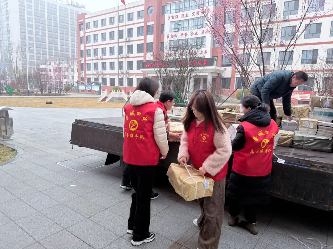 晋城四中以“春风送暖雷锋行,助人为乐润心灵”为主题,学校党员教师与学生志愿者同步开展志愿服务。大家分工协作,为各班分发新学期书籍,搬运核对细致高效,保障教学有序开展。