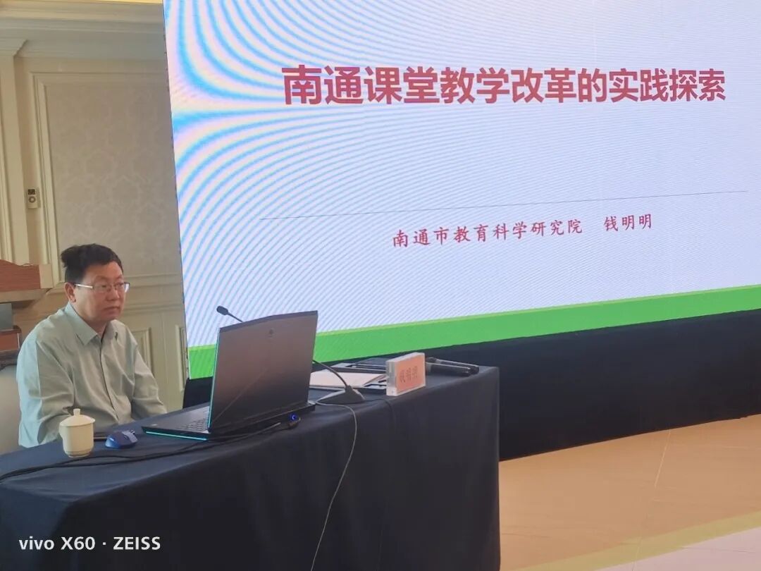 南通市教育科学研究院理论研究室主任钱明明以《南通课堂教学改革的实践探索》为题,深入阐释“立学课堂”的内涵要求、迭代演进与操作体系,聚焦学为中心、学科实践、知识统整,为老师们改进课堂教学、提升育人实效提供了有力支撑。