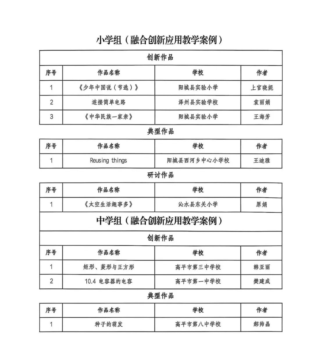 教师参赛作品涉及微课、融合创新教学案例,学生参赛作品涉及数字创作、计算思维、科创实践、“成语中国”微电影等多个领域。