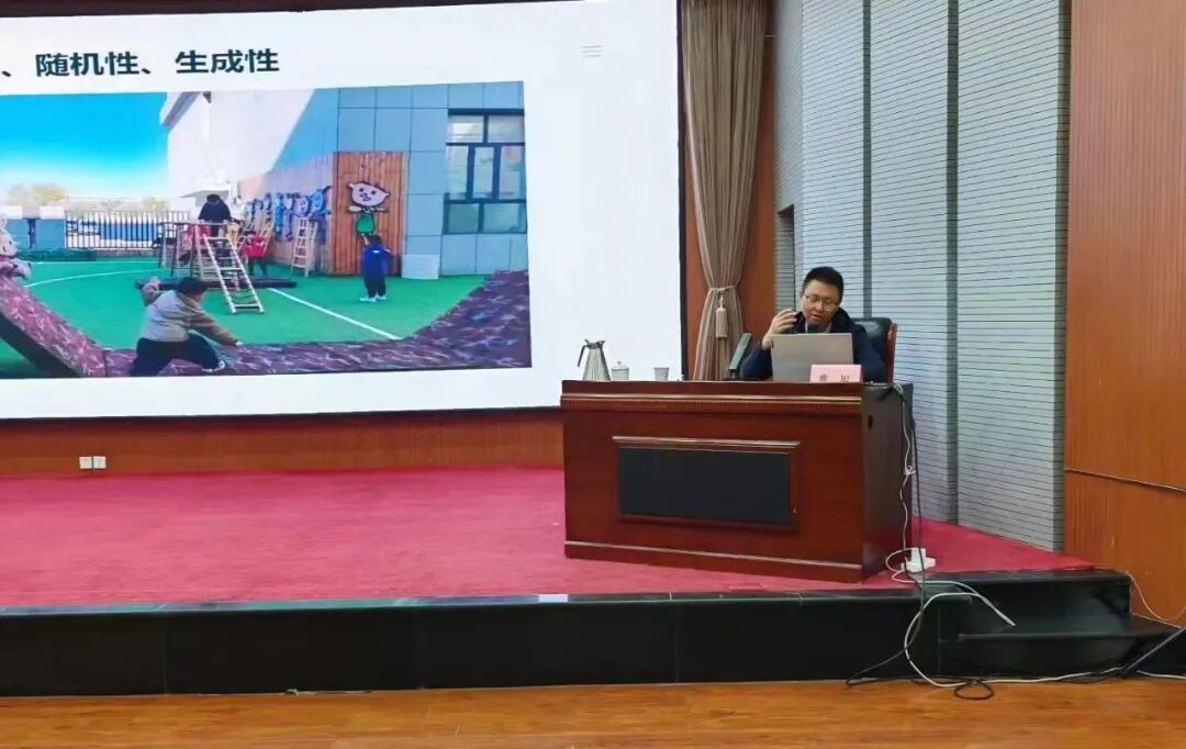 内蒙古康巴什区教体局学前教育教研员曹旭,作了题为《改变,从落实“评估指南”反思开始》专题讲座,通过分享区域学前教育改革的实践经验,从“以幼儿为中心变革管理模式,以低结构材料为主支持大胆创新,以弹性时间安排追随幼儿的节奏”等方面为老师们详细阐述了支持幼儿自主游戏的策略。