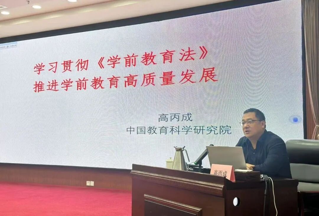 中国教科院学前教育研究室主任高丙成,作了题为《学习贯彻<学前教育法>,推进学前教育高质量发展》专题讲座。从深入浅出的政策解读、到依法治教与科学保教的路径融合,再到新时代学前教育发展的展望,全面系统地对《学前教育法》进行了解析,让老师们既触摸到《学前教育法》的顶层设计,又收获了落地实践的金钥匙。