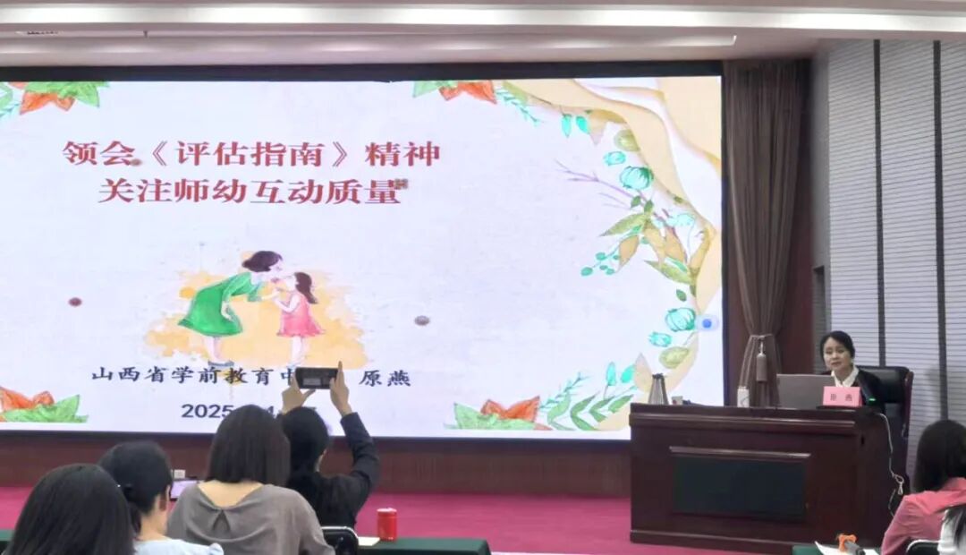 山西省学前教育中心副主任原燕,作了题为《领会<评估指南>精神,关注师幼互动质量》专题讲座。原主任从颁布背景、评估定位和评估内容三方面对《评估指南》进行了深度剖析,为构建和谐的师幼关系,提升教师观察及回应幼儿的专业实践能力提供了指导策略。