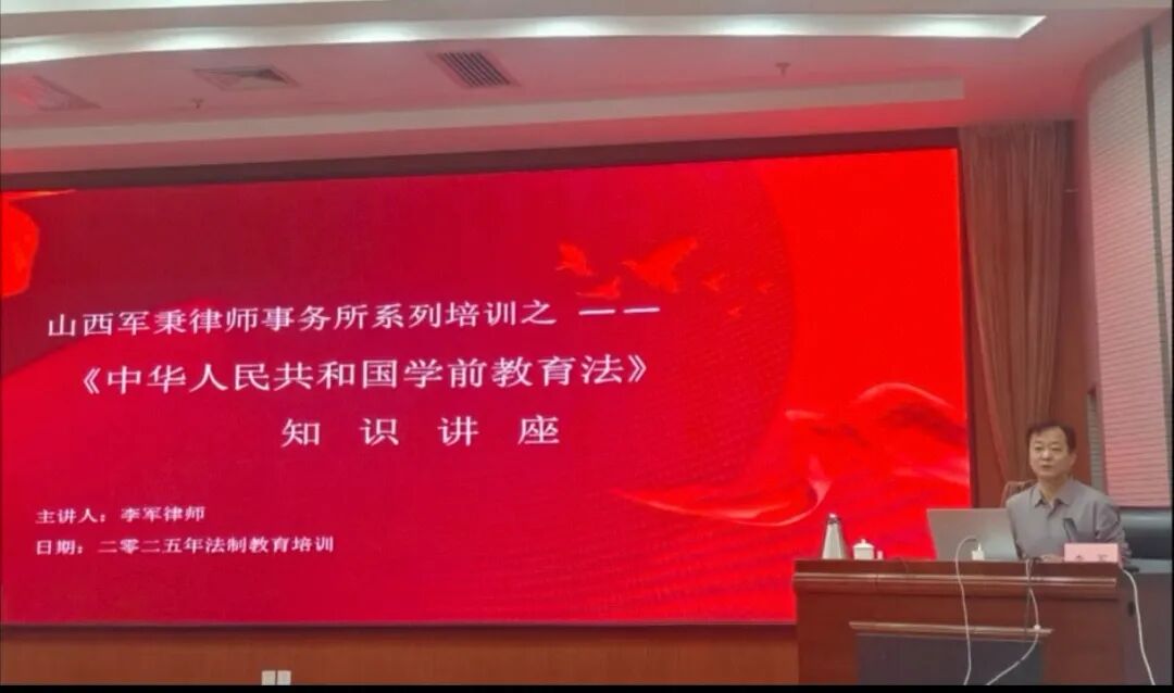 山西军秉律师事务所主任李军,从立法背景、核心条款、责任划分等方面对《学前教育法》进行深度解读,他提出的“七大机遇”,让老师们看到学前教育事业在政策支持、资源投入等多方面迎来的蓬勃发展契机,而“十大违法行为”及经典案例分析,则给老师们敲响了警钟,让老师们清晰认识到在日常保教工作中要明底线,知敬畏。