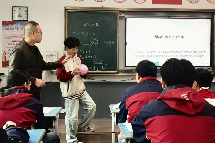 常青老师执教的沪粤版八年级物理《压强》一课,聚焦压强核心知识,课堂以铅笔压手指、挤压气球实验导入,引导学生感知压力作用效果;再结合实例建构压力、压强概念,辨析压力与重力区别;随后通过分组实验探究压力作用效果的影响因素,剖析实验逻辑;最后结合生活实例讲解压强增减方法,辅以习题、小结,层层递进落实学科核心素养。