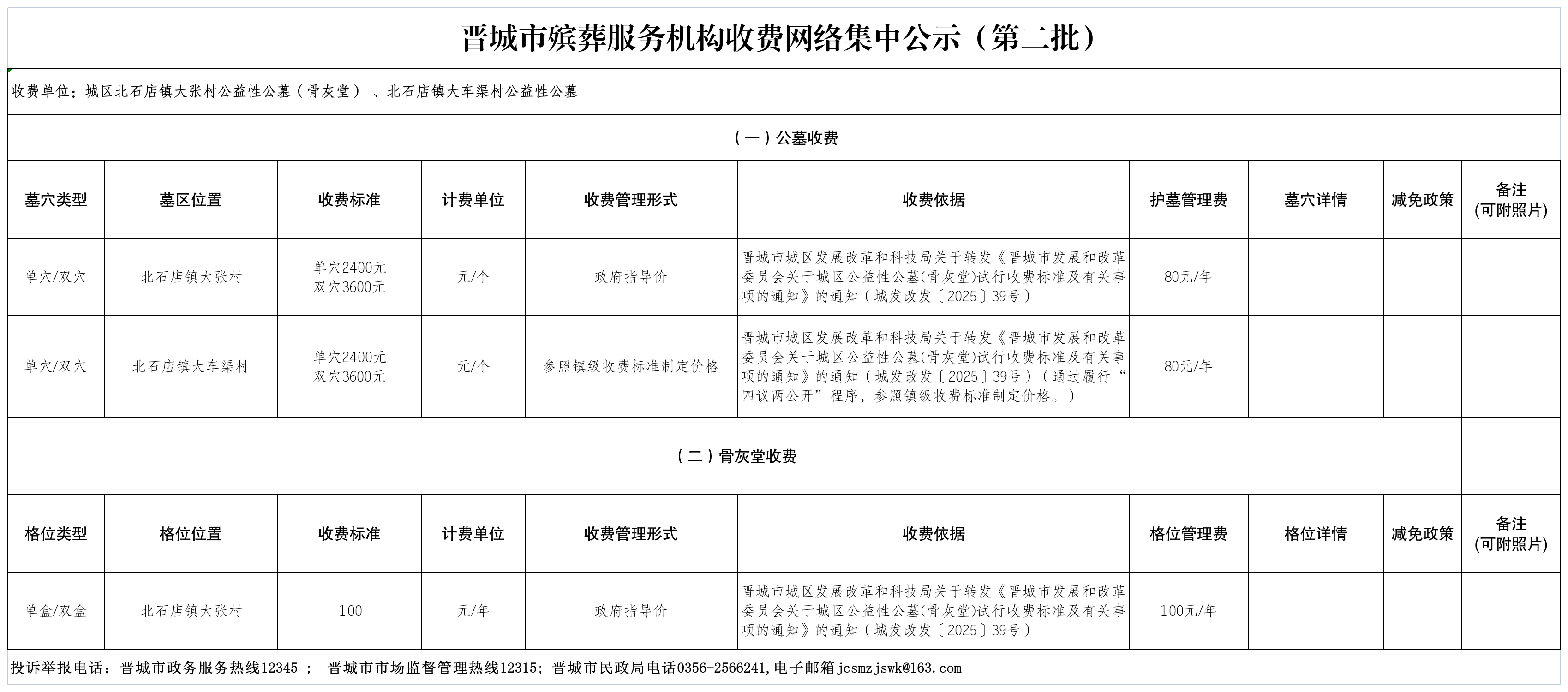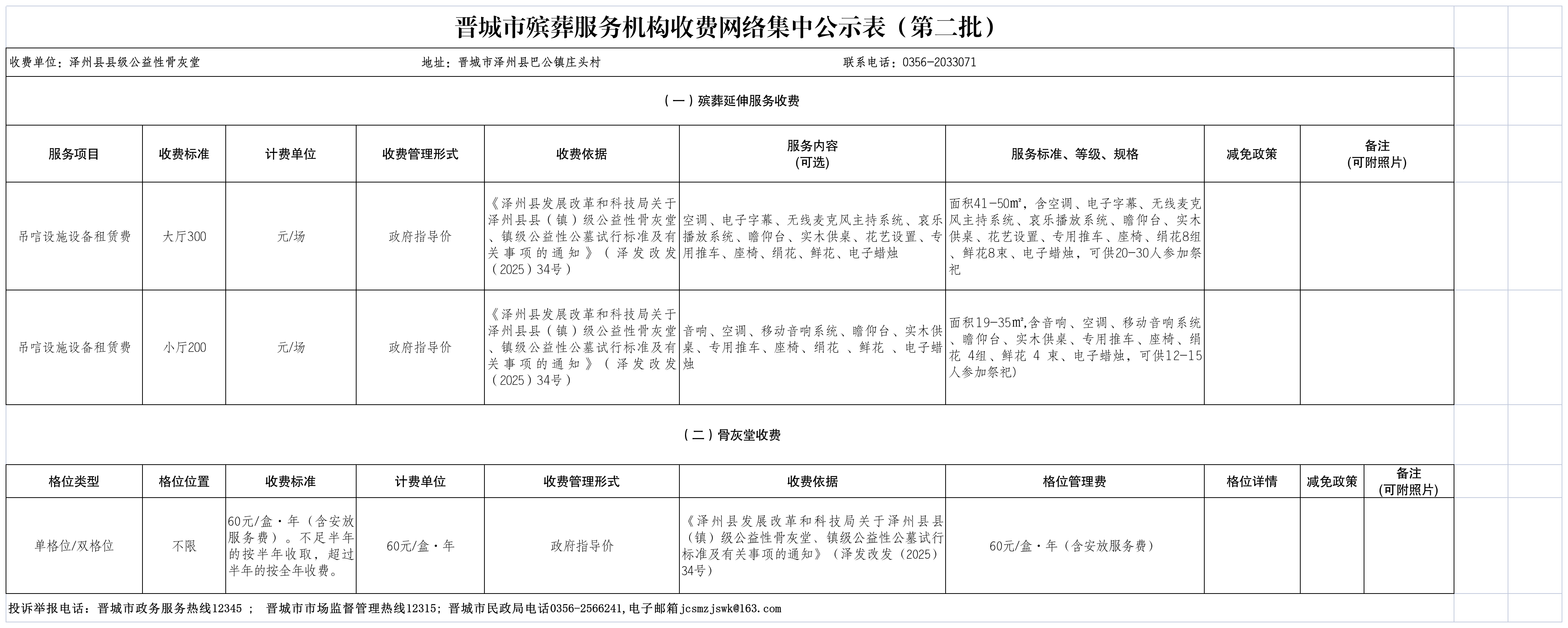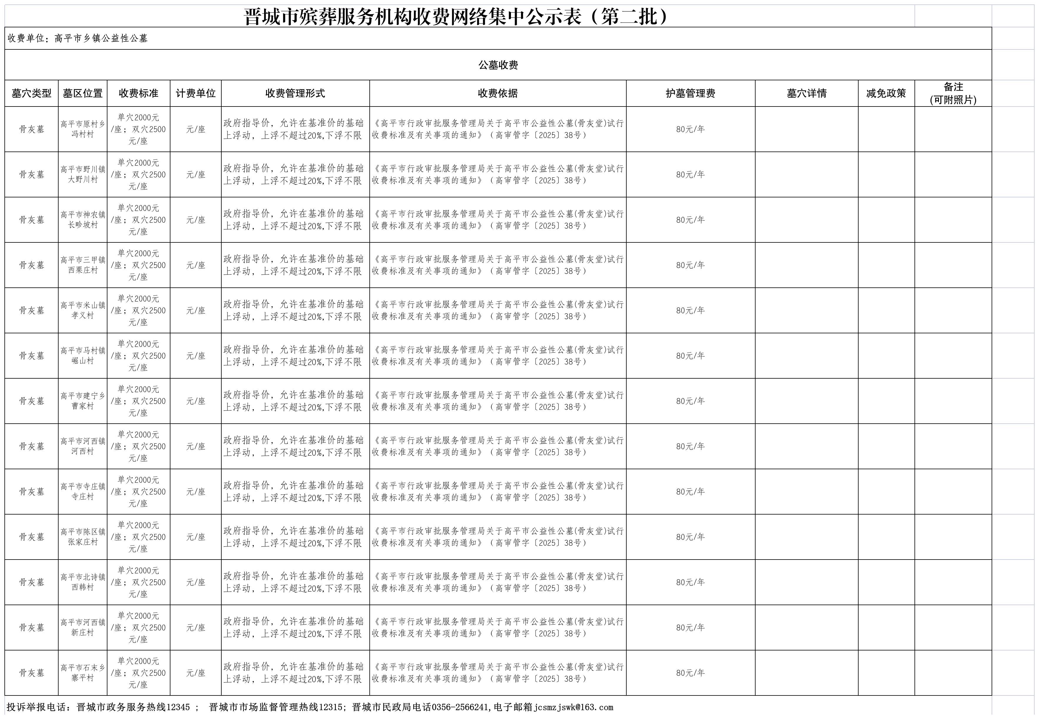 晋城市殡葬服务机构收费网络集中公示(第二批)