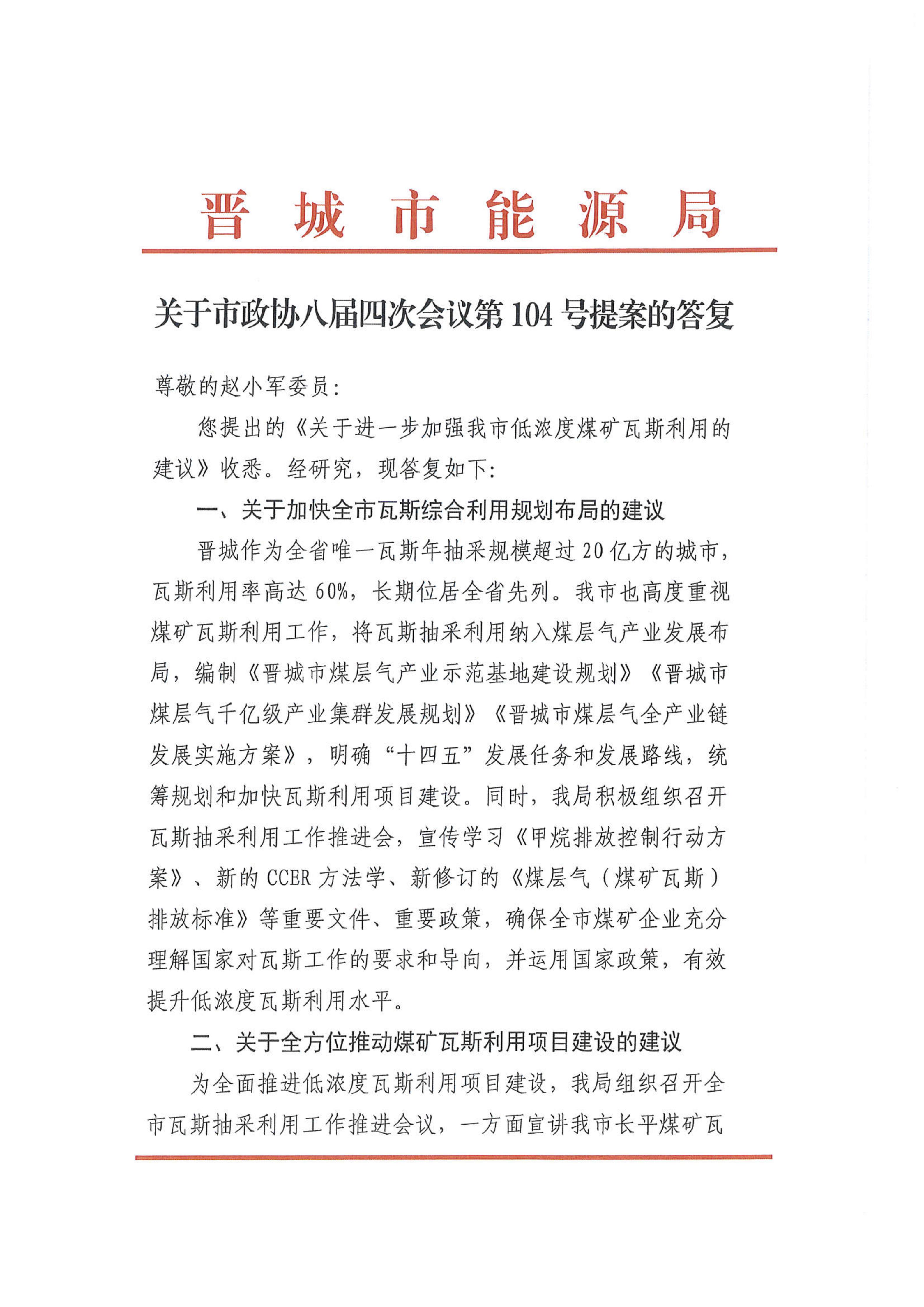市政协八届四次会议第104号提案答复