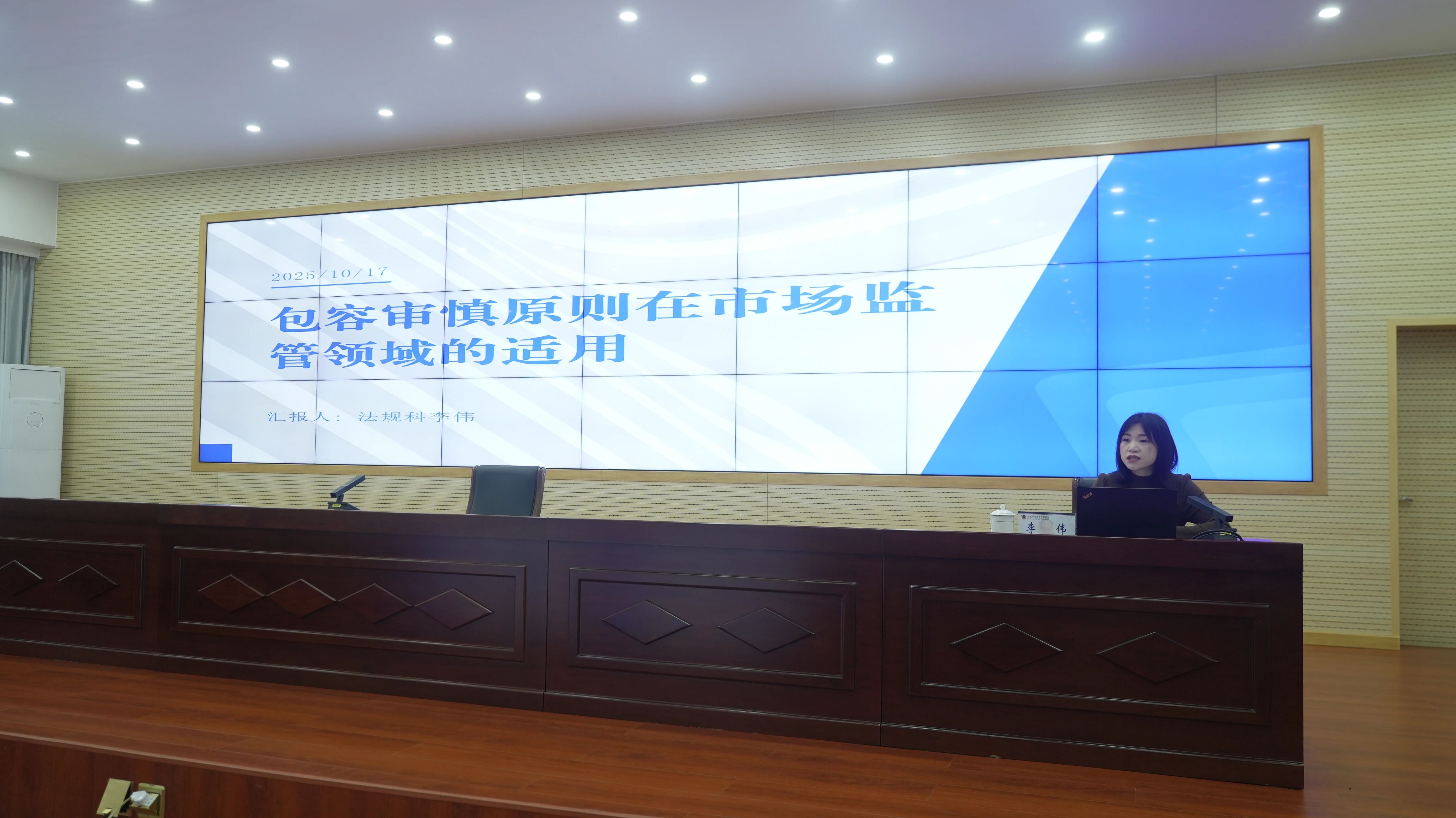 10月15日,市市场监管局举办第六期“市场监管·半月谈”,市局法规科负责人李伟以《包容审慎原则在市场监管领域的适用》为主题进行了分享。市局机关在主会场参加活动,各县(市、区)局、开发区分局、市综检中心、市市场监管综合行政执法队通过视频连线在各分会场同步学习。