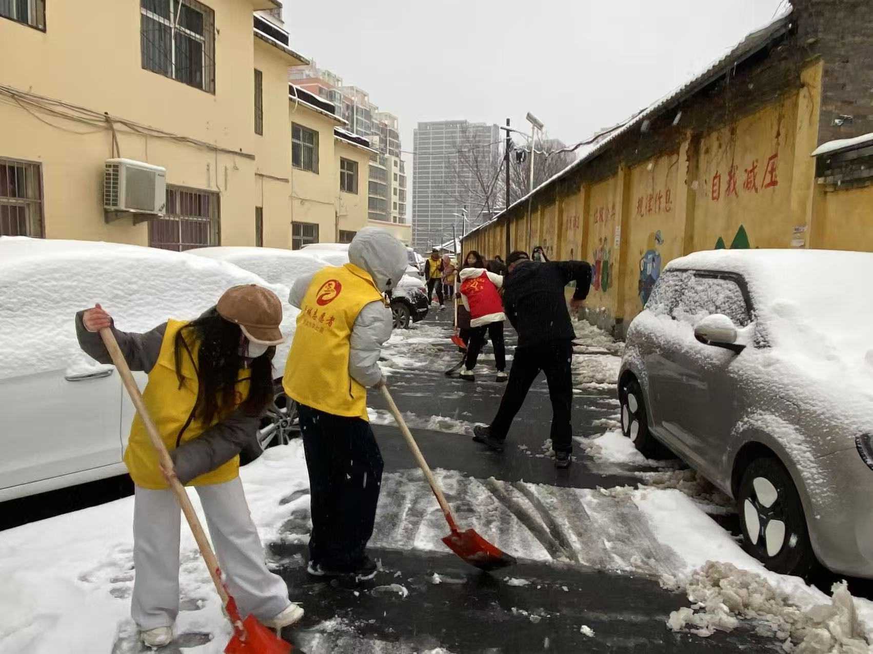 抵达社区后,志愿者们与社区工作人员进行简单对接,就立即手持铲雪工具,对社区主干道、单元门口等人员出行密集区域进行集中铲雪。为避免晚上结冰后清除难度增加,大家不畏严寒、迅速行动,手冻得通红却丝毫没有懈怠。经过近 2 小时的“作战”,社区内主要通行道路的积雪被彻底清除,志愿者们为居民开辟出安全畅通的 “便民通道”。