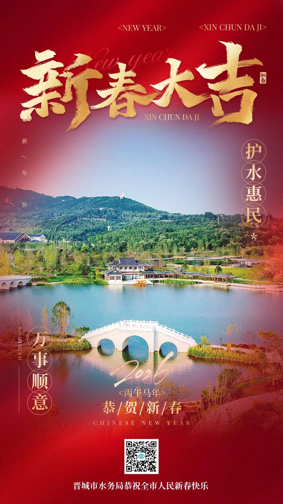 瑞马迎春送福音,初心使命谱新篇。值此新春佳节之际,晋城市水务局恭祝全市人民:新春快乐,马年大吉!