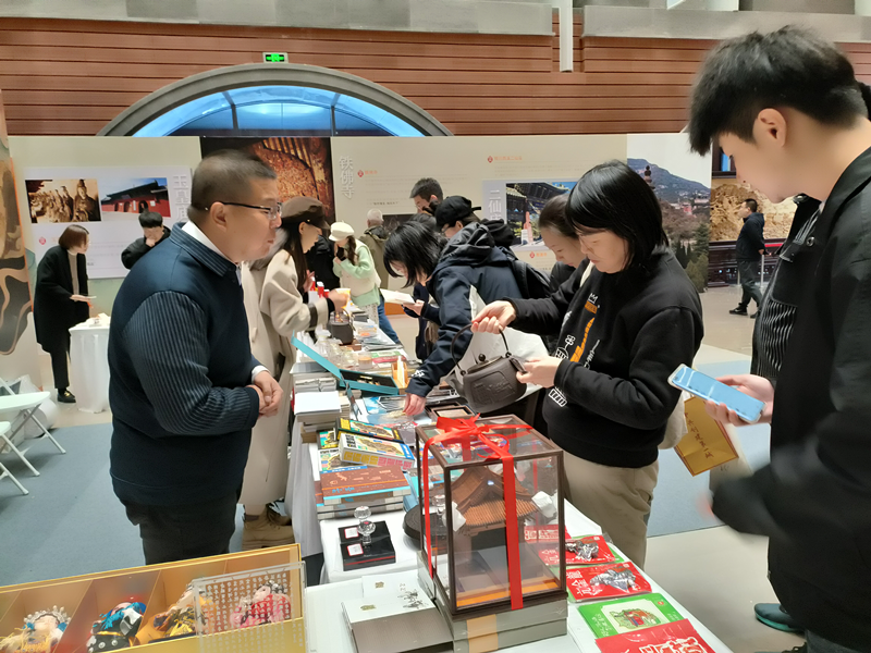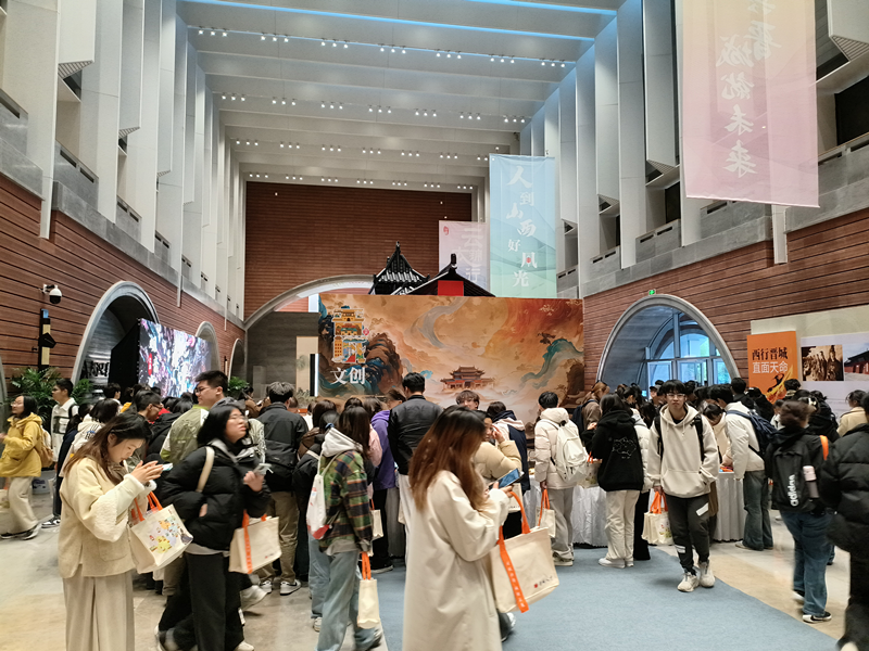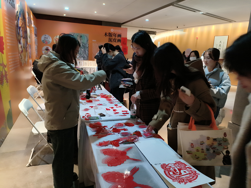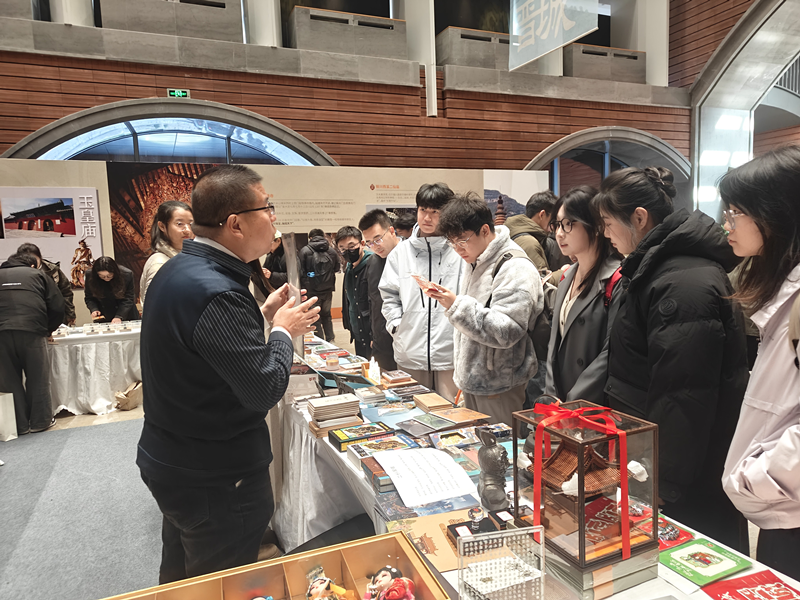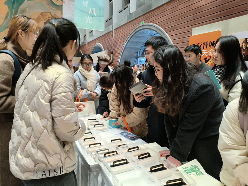 教学楼大堂处的文创展位上,各类精致而又独具地方特色的文创产品也让学子们大饱眼福,金代古戏台模型、绢人娃娃、二十八星宿铁壶、创意冰箱贴等,吸引过往师生纷纷驻足欣赏。其中,玉皇庙二十八星宿印章引起众多浙大学子的兴趣,大家纷纷拿出自己的盖章本或通关文牒,排起长队争相盖章,场面热闹非凡,人流不断。