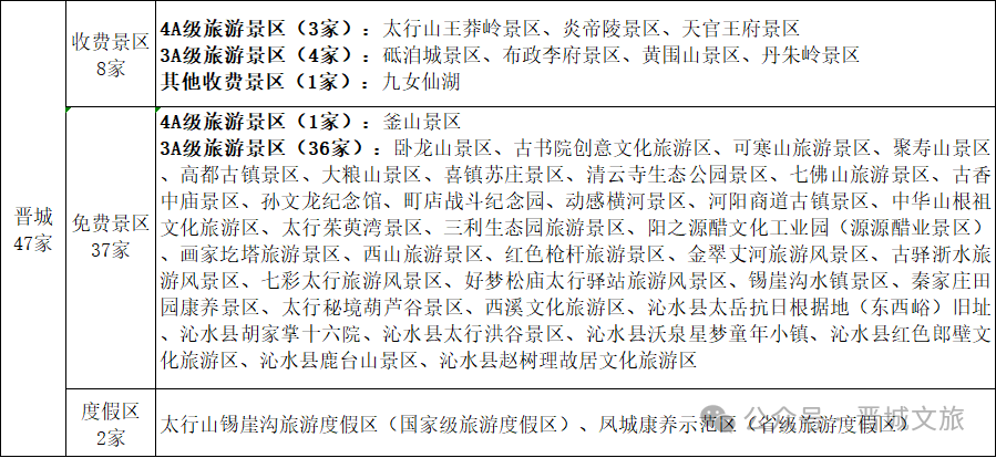 原本收费的晋城优质景区