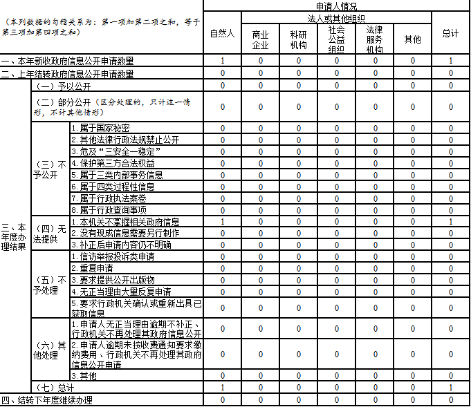 依法依规做好政府信息依申请公开工作,全年共收到和办理依申请公开1件,上年度结转政府信息公开申请0件。