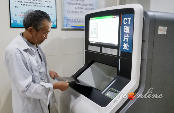 8月20日,75岁的程成顺在市人民医院做了CT检查,半小时后,他将检查单上的二维码放置CT取片处扫了扫,不到两分钟,他的CT片就从机器下方的窗口“吐”了出来。同时,患者还可以扫描检查单或者药方上的二维码进行缴费,有效缓解了患者排队压力,减少了等待时间。